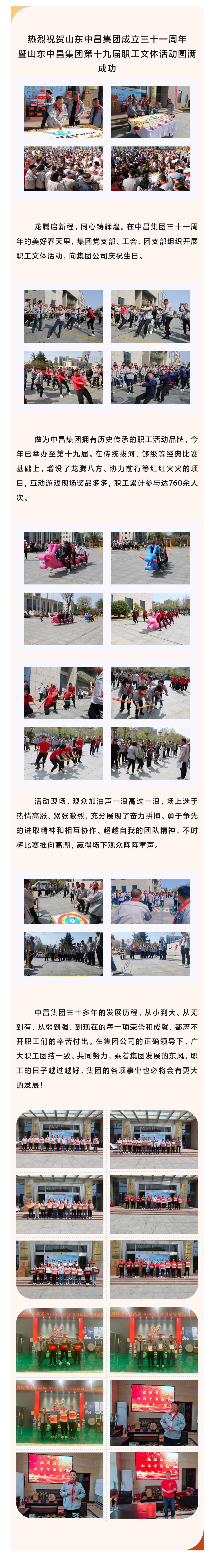 熱烈祝賀山東中昌集團成立三十一 周年暨山東中昌集團第十九屆職工 文體活動圓滿成功